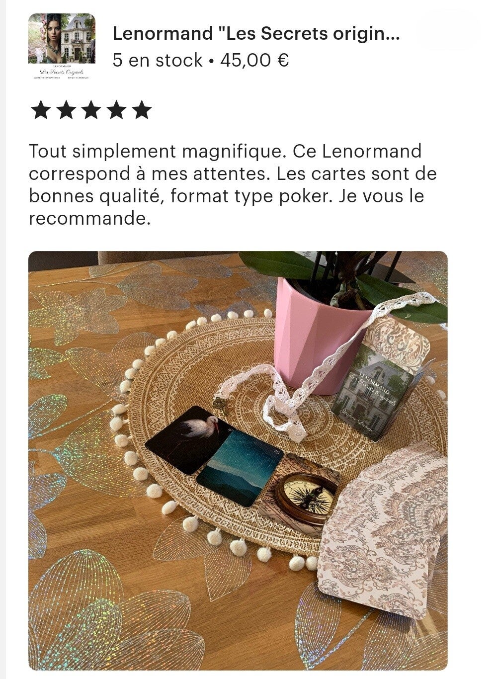 Je suis super satisfaite de mes achats, les 5 Oracles sont tout simplement Magnifiques 🫶🏻🫶🏻🫶🏻 Je félicite la créatrice pour ses splendides créations 🤩 Merci également pour la dédicace écrite et pour ses attentions 🫶🏻🫶🏻🫶🏻 Je recommande vivement ses créations pour leur beauté et je recommande Jeanne Lamar pour son sérieux, sa gentillesse et son envoi ultra rapide 🌺🦋🫶🏻Merci 🌺